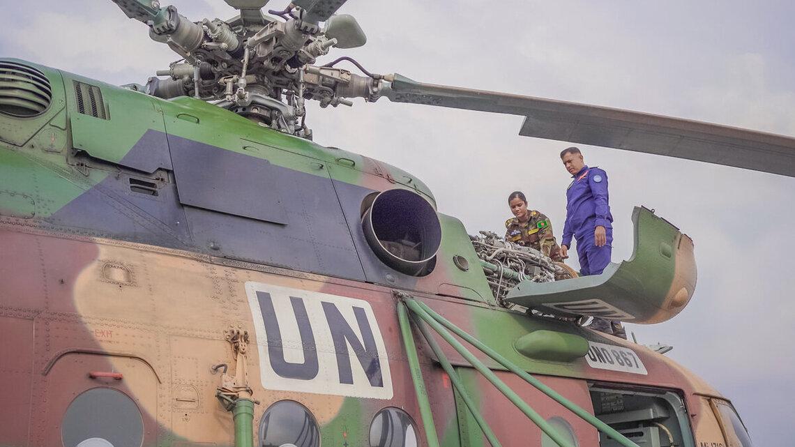 Captain Sabrina Binte Islam is an aeronautical maintenance engineer from Bangladesh. She arrived in the Democratic Republic of the Congo in March 2024, and her job is to ensure the safety and functionality of MONUSCO helicopters, which crisscross the Congolese skies to deploy troops, transport civilians and provide emergency responses in the mission’s areas of operation.