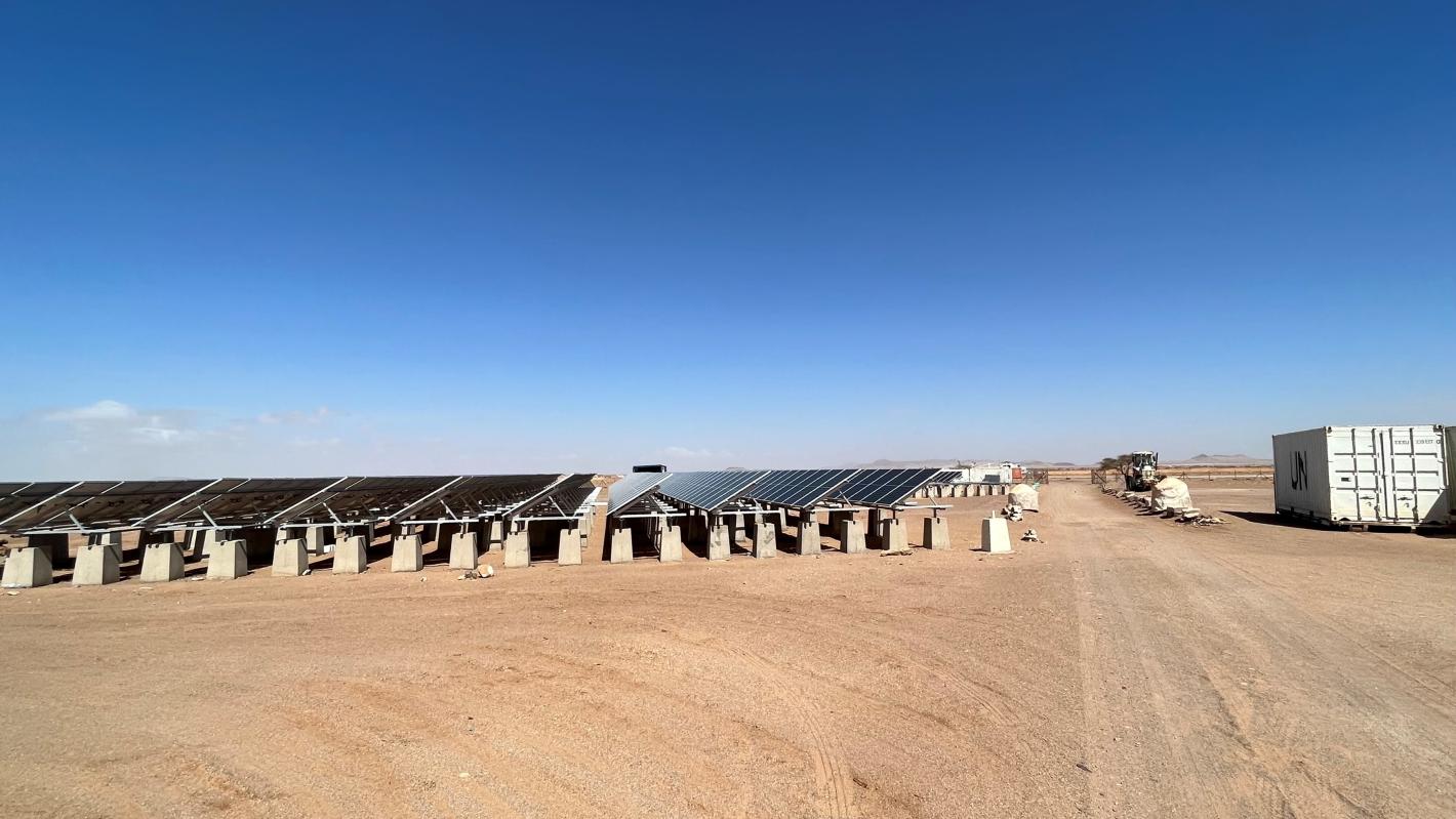 In Western Sahara, MINURSO operates in an environment with huge solar and wind power potential. In order to improve MINURSO’s “green footprint” and to promote the sustainability of our compounds, starting in 2020/2021 MINURSO’s Engineering Section has begun shifting towards photovoltaic solar systems at the Team Sites. The first panels have already been set up in Mahbas and Awsard. MINURSO is now working to accelerate the installation of the solar kits in five further Mission locations. Just on 100-kW solar PV system can supply up to 90% of the energy needs of a UN compound in the Sahara Desert.