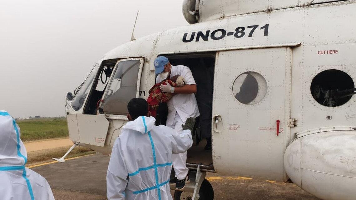 For security reasons, we refer to him as L. He is one of the 19 displaced persons who were seriously injured in the deadly attack on Tuesday, February 1, 2022 by assailants at Plaine Savo camp, in Djugu territory. He received humanitarian assistance from MONUSCO, which first transported the injured by road from Bule to Bayoo, roughly 90 km from Bunia; then by helicopter from Bayoo to Bunia where they arrived late Wednesday afternoon. Taken care of in a local medical structure, L., in his late thirties, underscores without the assistance from MONUSCO, he and the other injured would not have had the right to appropriate care and would have probably died as a result of the serious injuries sustained during this attack from which he is still hardly recovering.