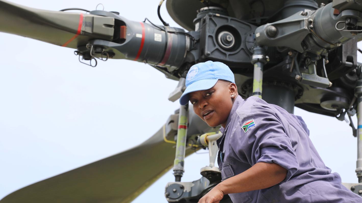 South African Army mechanics perform rotations every three months in peacekeeping missions. This is the second time Joy Mmotong has been assigned to Goma in the Composite Helicopter Unit, whose mission is to be ready 24 hours a day for airborne evacuations of the sick and injured for MONUSCO, whether civilians or the military personnel.