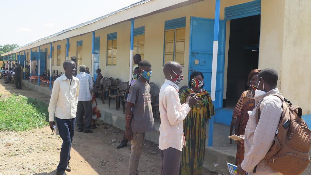 All smiles (behind face masks) as an UNMISS-funded renovation of a primary school is handed over to residents in Alur County.
