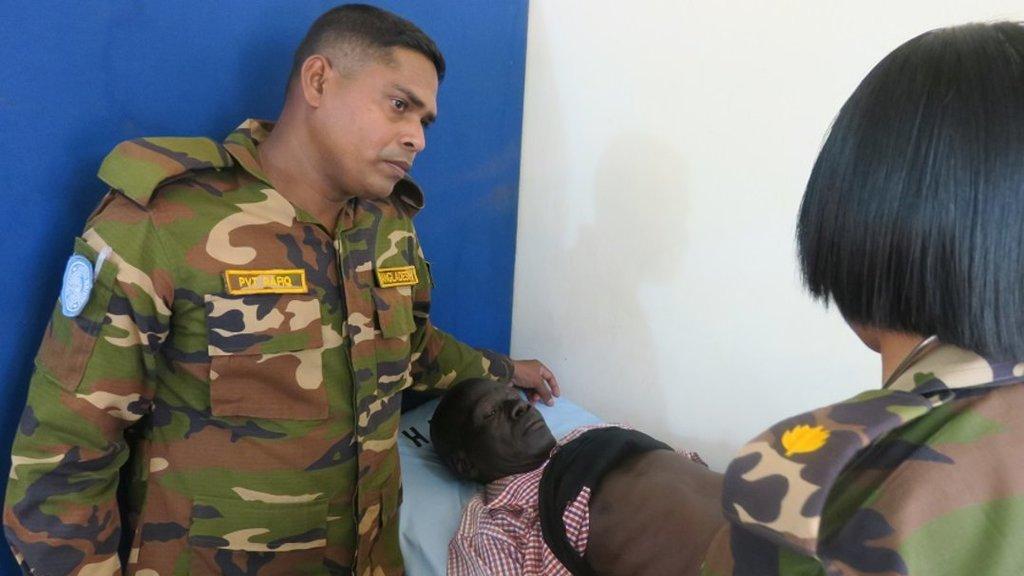 A civil servant in Wau enjoying free medical service provided by UN peacekeepers.