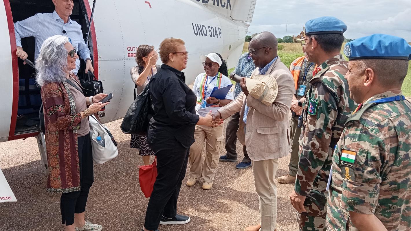 JUBA/UPPER NILE – United Nations Under-Secretary-General, Catherine Pollard, stressed the Organization’s solidarity and support for the people of South Sudan during a high-level visit to the country.During her four days on the ground, she engaged intensively with the leadership of the United Nations peacekeeping mission (UNMISS), the broader UN family, government authorities and key partners in the peace process, to foster collaboration and drive impactful change.As the United Nations’ Under-Secretary-General for Management Strategy, Policy and Compliance, Catherine Pollard leads her department in policy leadership in all management areas through an integrated global strategy, and strengthened monitoring, evaluation and accountability mechanisms, helping ensure the organization operates efficiently and transparently.The USG visited Juba and spent two days in Upper Nile where UNMISS protects and supports a large population of people displaced by conflict and flooding. She engaged with UN Police officers (UNPOL) stationed at a critical location near the UN Protection of Civilians site, where almost 42,000 displaced people reside, to assess the security situation and understand the impact of the mission’s work. She also visited a new police station next to the residential area around Malakal Airport, which is vital to helping ensure the safety of local communities.“We will mobilize support and work with the State government’s counterparts in prioritizing the needs and delivering the help that the government needs in Upper Nile State. UNMISS is here, and the United Nations is here. We are in full solidarity with you,” asserted USG Catherine as she concluded her meeting with senior government officials and state authorities.After observing the severe impact of climate change on roads caused by heavy rains, the Head of the UNMISS Malakal Field Office, Alfred Orono Orono, assured the USG that Indian peacekeeping engineers are actively working to build and repair roads and clear drainage systems in Malakal."We're working hard to help those displaced by flooding to return home while also supporting those who have lived in the UN Protections of Civilians camp for over 10 years. Many are tired and eager to go back, and we're partnering with the government and humanitarian organizations in these efforts."Upon returning to Juba, USG Pollard urged UN personnel to continue all efforts towards peace in South Sudan while upholding the organization’s core values and standards of conduct.