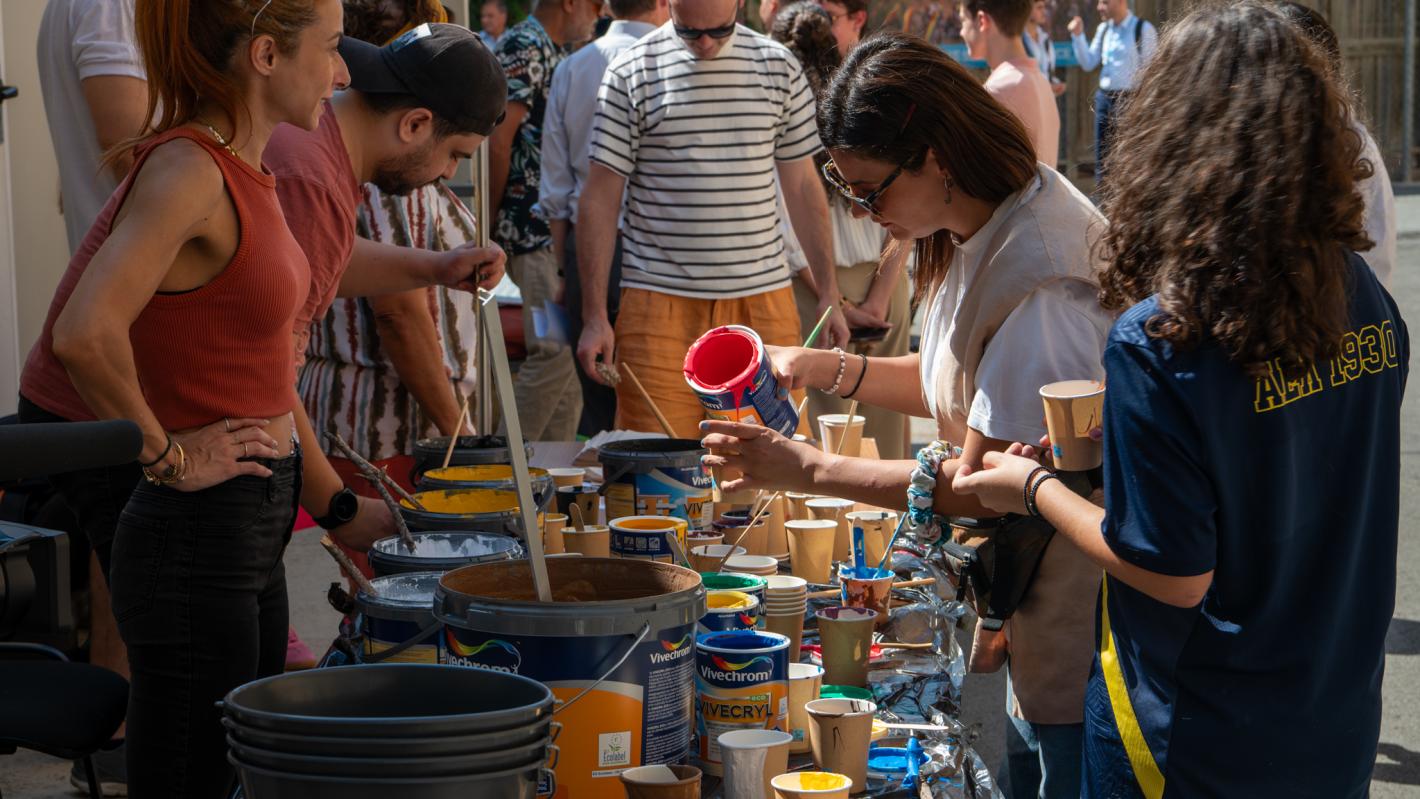 On 21 September, UNFICYP hosted an ‘artvocacy’ event in Ledra Palace Hotel where two Cypriot artists, Ramadan Nalcıoğlu and Vicky Panagi, came together with young people from across the divide, activists and UN peacekeepers and painted a mural in one of the walls outside the hotel to mark International Day of Peace.