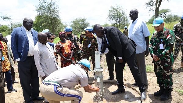 On August 8th, UNISFA handed over two fully completed water handpumps, to the Bokchop IDPs Camp and Nhom Akoon Village, during a ceremony held in the two villages. The event was officiated by OiC Ag HoM/FC, Brig General Aby Syed Mohammod Bakir and Mr. Noon Deng Nyok - Deputy Chief Administrator. Representatives of the local community and IDPs, were in attendance with a notable presence of women and disabled persons.