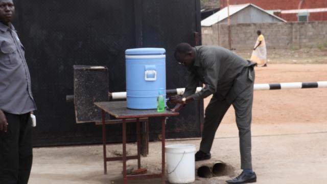 Hand washing and social distancing demonstrated in Bor, where many people have a hard time complying with COVID-19 prevention measures.