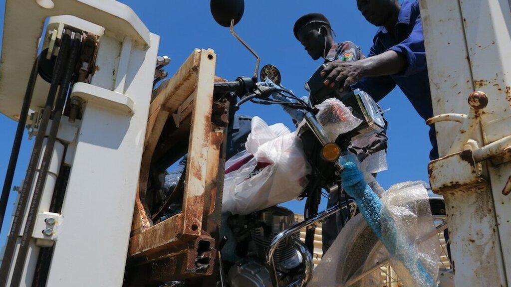 This motorbike, still wrapped in plastic, and nine others will help police in Jonglei do a better job.