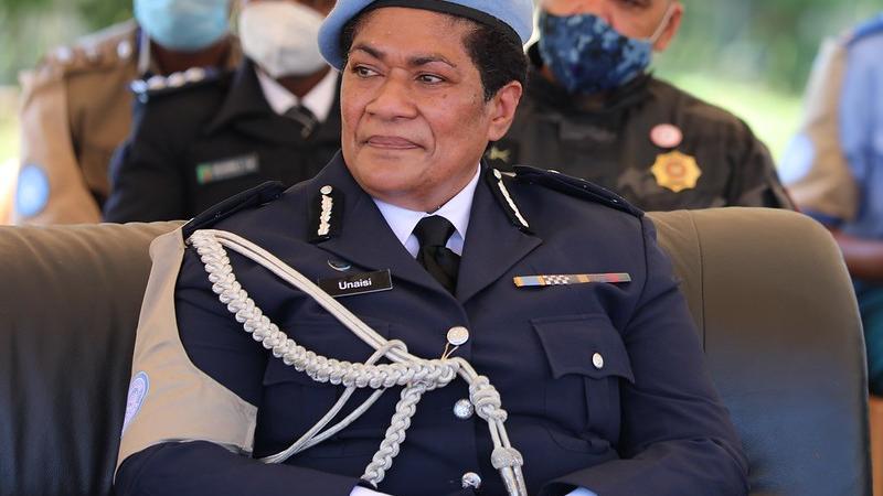 Unaisi Bolatolu-Vuniwaqa, the first woman to be appointed as Police Commissioner of the world's largest peacekeeping mission, UNMISS, was honoured by officers under her command at an emotional and heartfelt parade today, as she completes her tenure in the mission. Photo by Francesca Mold/UNMISS.