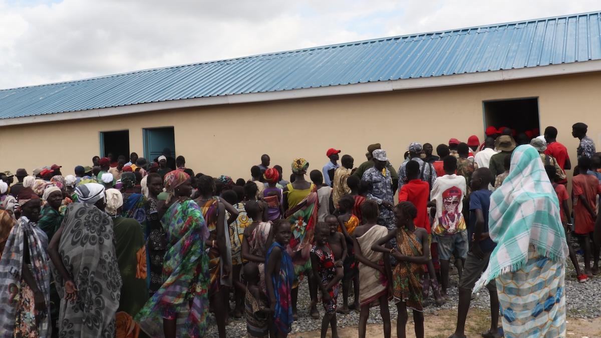 Everyone in Manyabol were on their feet to see and celebrate the result of an UNMISS-funded project that will give hundreds of students a decent learning environment. Photo: Achol Kur Marial Kur/UNMISS
