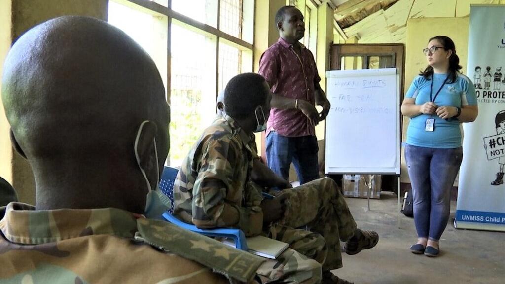 “This is part of our capacity building. They (armed groups) need to know that they are violating children’s rights, which is also a breach of International Humanitarian Law,” said Moses Bagari, a Child Protection Officer serving with the peacekeeping mission and participating in a workshop held in Lirangu in Western Equatoria State.