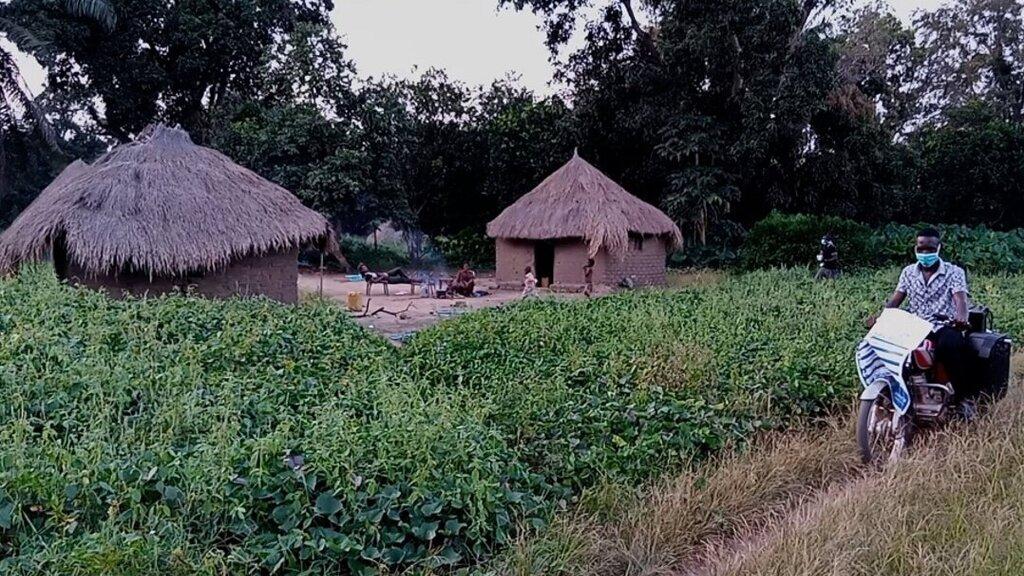 A man on a bike on a mission: raising awareness on COVID-19 in remote Ibba County, in several languages.
