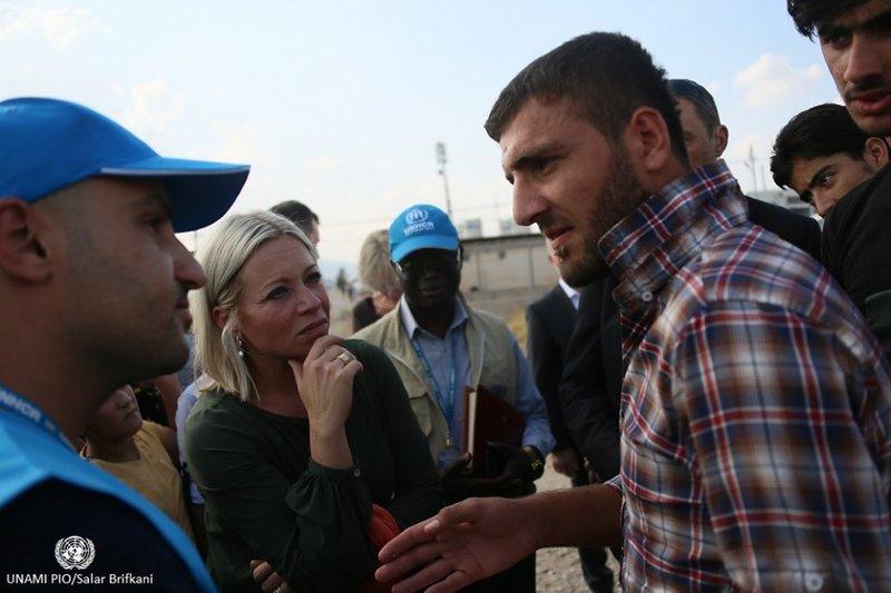 Jeanine Hennis-Plasschaert, Special Representative and Head of UNAMI, visited Bardarash camp in Dohuk on 23 October. The camp recently reopened to incoming refugees from Syria and currently hosts 7,038 people, with more and more refugees arriving daily. The Special Representative spoke with camp management about the services being provided, witnessed the registration process for incoming refugees, and listened to refugees’ concerns. Services in the camp are being provided by several humanitarian actors, including UNHCR.