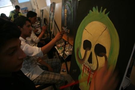 9 July 2010 - Dark scenes of blood dripping from giant poppy flowers and skulls and burning fields where beheaded farmers recline – these are just some of the paintings created by students of Behzad Art School that are now a…
