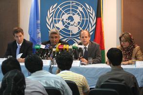 KABUL - Transcript of press conference by his Excellency Minister Rahimi, Minister of Agriculture, Irrigation and Livestock, Robert Watkins, Deputy Special Representative of the Secretary-General for Afghanistan, Laurent…