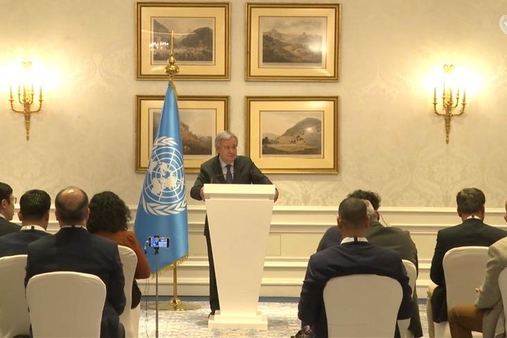 DOHA, QATAR - UN Secretary-General’s media stakeout in Doha, Qatar, following two-day meeting of special envoys on Afghanistan. TRANSCRIPT SECRETARY-GENERAL’S PRESS ENCOUNTER ON THE MEETING OF SPECIAL ENVOYS ON AFGHANISTAN…