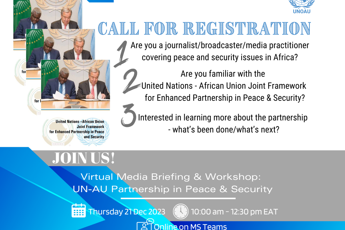 Virtual Media Briefing & Workshop on the UN-AU Joint Framework on Peace & Security: The United Nations – African Union Joint Framework for Enhanced Partnership in Peace and Security was signed on 19 April 2017, during the…