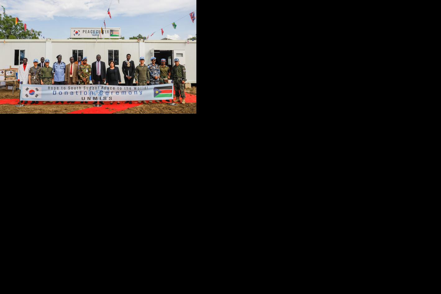 UNMISS and local officials pause for a group photo at the opening of the Dr. John Garang Memorial University of Science and Technology Peace Centre in Bor. The Dr. John Garang Memorial University of Science and Technology in…