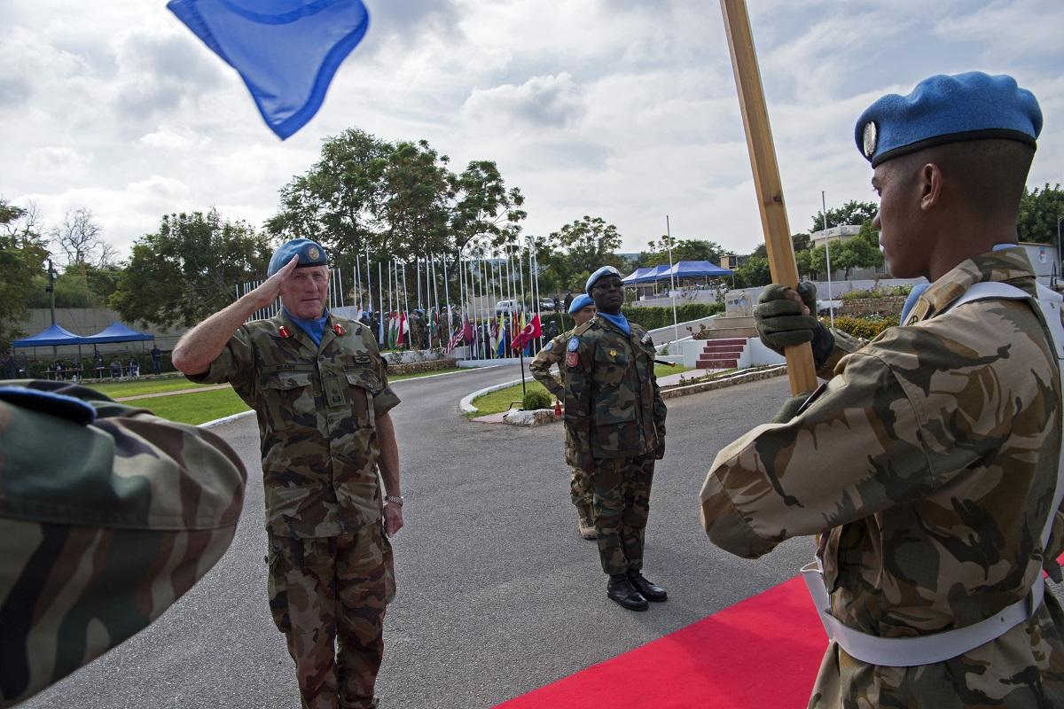 UNIFIL Head of Mission and Force Commander Major General Michael Beary salutes the UN flag during a ceremony marking United Nations Day at UNIFIL Headquarters on 24 October 2017. On UN Day, UNIFIL Head of Mission and Force…