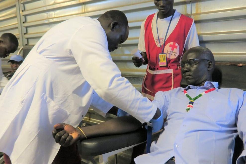 Responding to a call from the Ministry of Health to save the lives of children and pregnant mothers, 60 UNMISS peacekeepers, both military and civilian, donated blood to Torit State Hospital in Central Equatoria. Photo by…