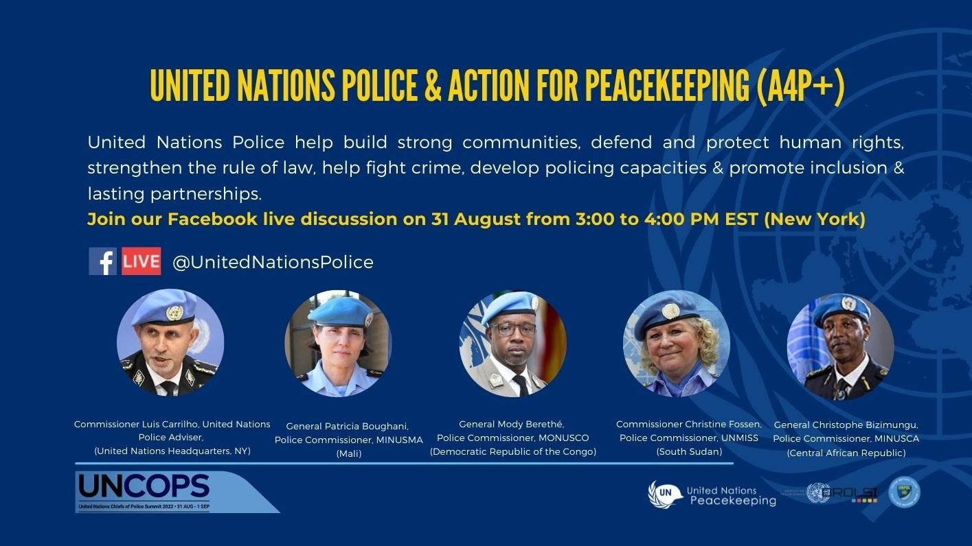 Join the discussion with UNPOL Commissioners leading some of the largest police components in United Nations Peacekeeping operations. We will discuss how UN Police enhances international peace & security by supporting Member States in conflict, post-conflict, and other crisis situations. We will also examine how UNPOL contribute to implementing key Action for Peacekeeping Priorities (#A4P+), promote women’s role in peace processes and political solutions, and speak about challenges facing peacekeeping and the future of United Nations Policing.