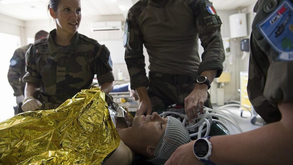 UNIFIL French peacekeepers with medical capabilities monitor their substitute patient. Several injured patients, two on stretchers, were rushed to a waiting helicopter. This was part of a real-life scenario and a dramatic air…