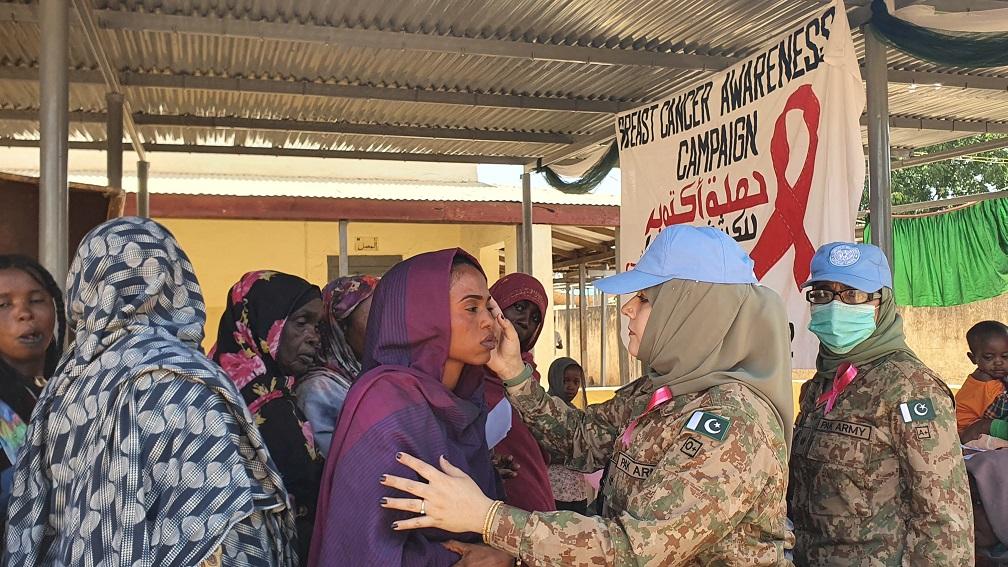 UNAMID photo. Female peace keepers from Pakistan’s Field Hospital operating from the Mission’s Team Site in Kabkabiya, north Darfur, recently organized a Breast Cancer Awareness Campaign in the Locality to sensitize the host…