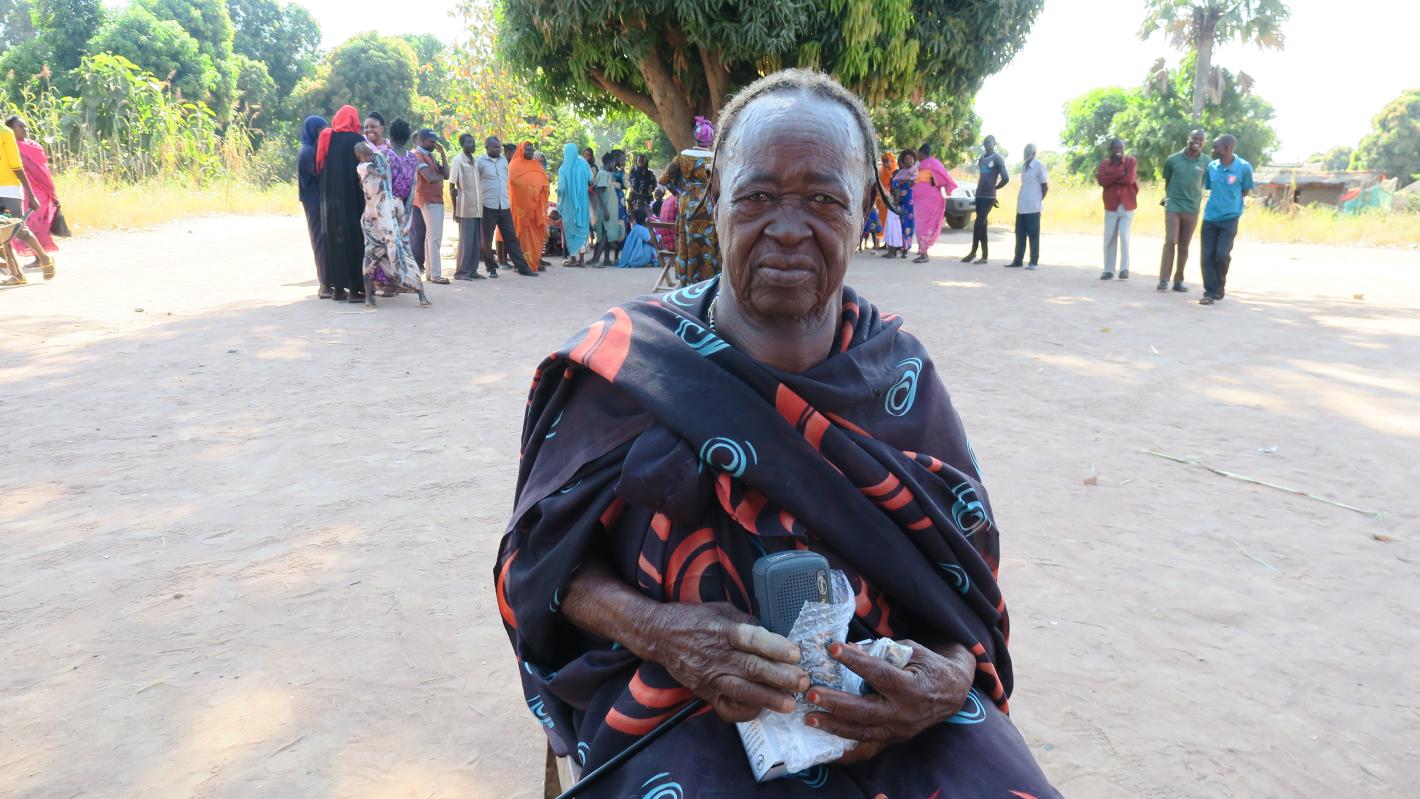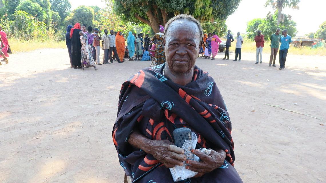 Hajat Karama holds tightly onto her new solar radio Hajat Karama has been relying on people around her to get news and information about what is going on in her country. “I am an old woman who is unable to even move around…