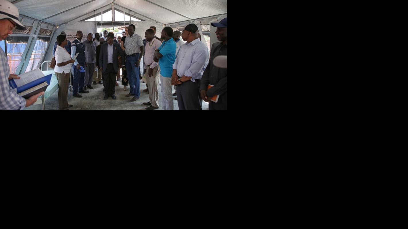 A high-level delegation inspects the facilities put in place in Yei should the Ebola virus reach South Sudan. One by one, the VIPs line up to squirt detergent on their hands and carefully wash them under a stream of water…