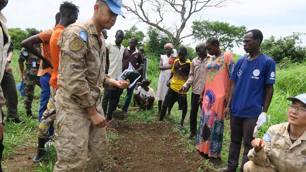 UNMISS peacekeepers help farmers in Agok increase food security by teaching agricultural skills
