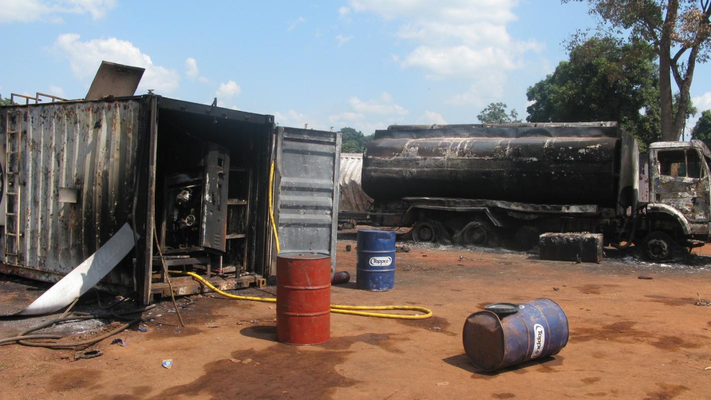 A fire consumed a tanker truck and three containers on 22 August in Yambio, Western Equatoria State, cutting petrol supplies and pushing up area fuel prices.
