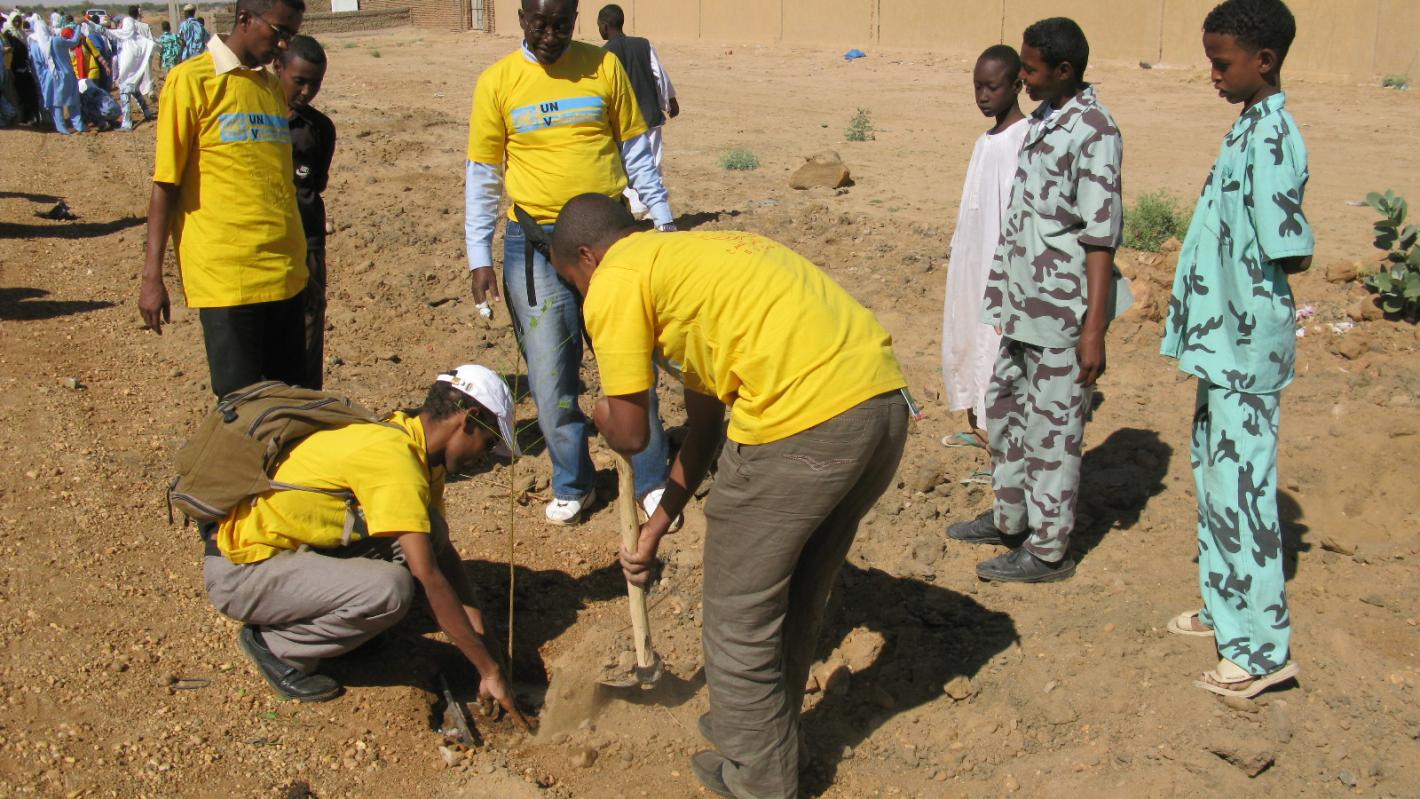 Arriving in five buses at the desert village of Wawisi, 50 kilometres north of Khartoum, 150 volunteers set out with the local community to plant 1,000 trees in commemoration of International Volunteer Day on 5 December.
