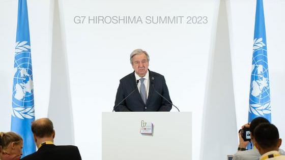 El titular de la ONU declara en Hiroshima que el mundo espera que el G7 demuestre liderazgo y solidaridad, y pide una redistribución del poder que refleje las necesidades actuales, además de apoyo financiero para acelerar la descarbonización de los países en desarrollo.