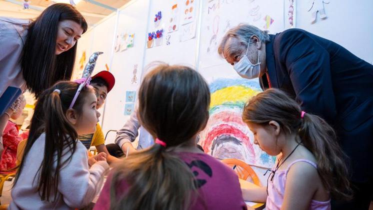 En su segundo día de visita al país vecino de Ucrania, el titular de la ONU se reúne con la presidenta de Moldavia, Maia Sandu, y visita a una familia que alberga a refugiados en su pequeño apartamento en Chisinau.