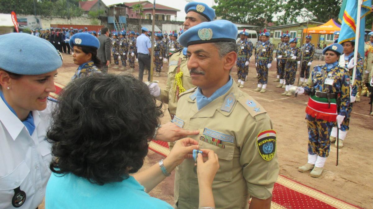 Kinshasa, le 19 avril 2018 – Quelque 379 officiers de la composante Police de la MONUSCO, dont 24 officiers individuels et 355 officiers des Unités de police constituées (FPU Egypte et Bangladesh), ont reçu la médaille des Nations Unies au cours d’une cérémonie à la Base MONUSCO-INCAL de Kinshasa.