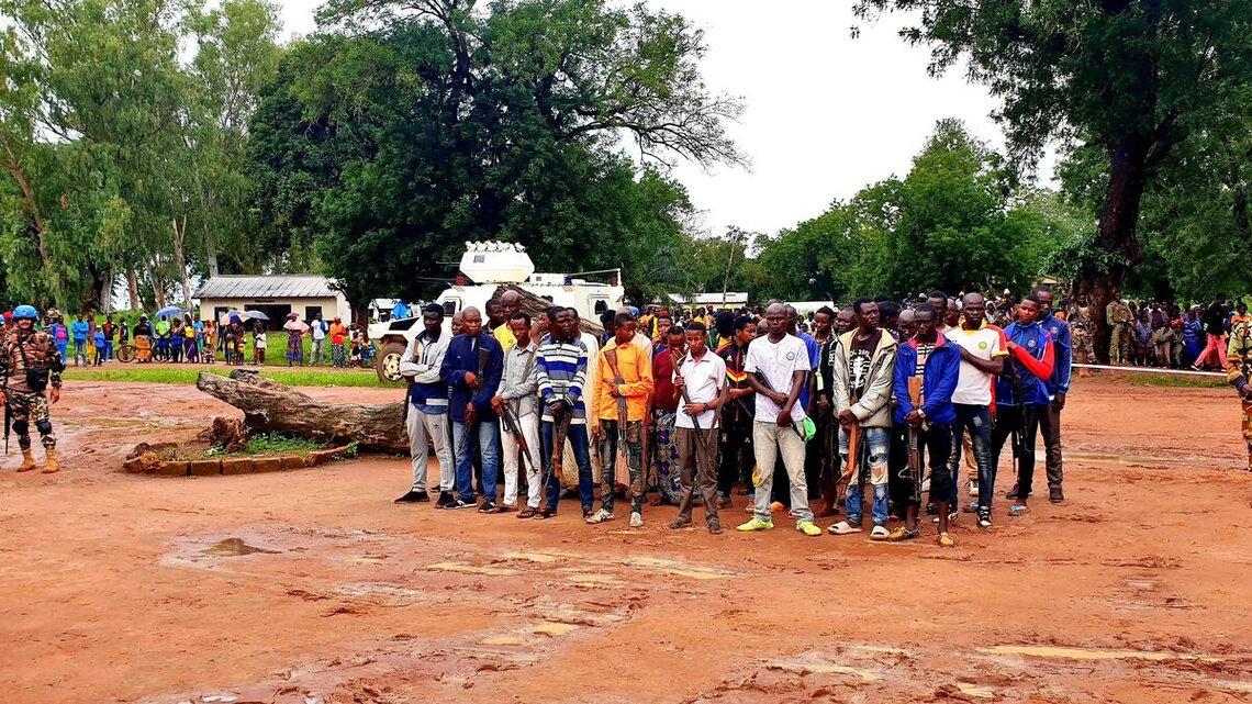 36 ex-combattants, dont trois femmes, ont été désarmés et 32 armes de guerre ainsi que 1 500 munitions et 16 grenades ont été collectées lors d’une opération de désarmement et de démobilisation volontaire d’ex-combattants, menée le 22 octobre 2024 à Kouango, dans la Ouaka, par une équipe mobile de l’Unité d’exécution du programme national de désarmement, démobilisation, réinsertion et rapatriement (UEPNDDRR). Chaque ex-combattant formellement démobilisé a reçu une carte attestant de son nouveau statut à l’issue de cette opération.