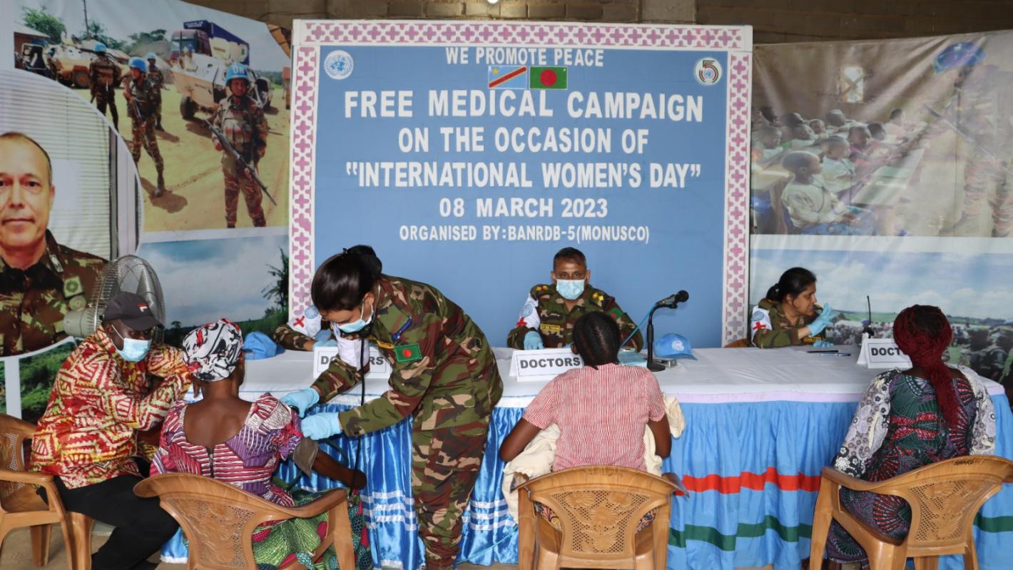 Toujours en marge de cette célébration, les Casques bleus du contingent bangladais de la Monusco ont aussi organisé à Bunia une consultation médicale gratuite au centre de formation professionnelle du camp Ndromo, camp qui accueille tous les contingents militaires de la MONUSCO. Une soixantaine de femmes de la région de Bunia, qui en ont bénéficié, se sont réjouies de cette initiative qui a permis de renforcer les liens avec les populations. Quatre femmes médecins ont été affectées à cette opération dont une psychiatre.