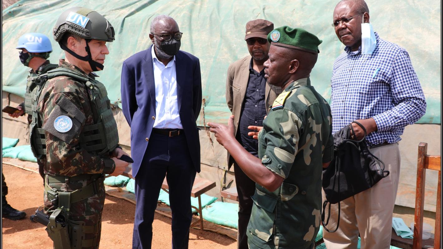 Khassim Diagne à Tchabi : « La traque des ADF va prendre une nouvelle dimension avec l’arrivée de forces supplémentaires de la FIB ». Photo MONUSCO/mICHAEL aLI