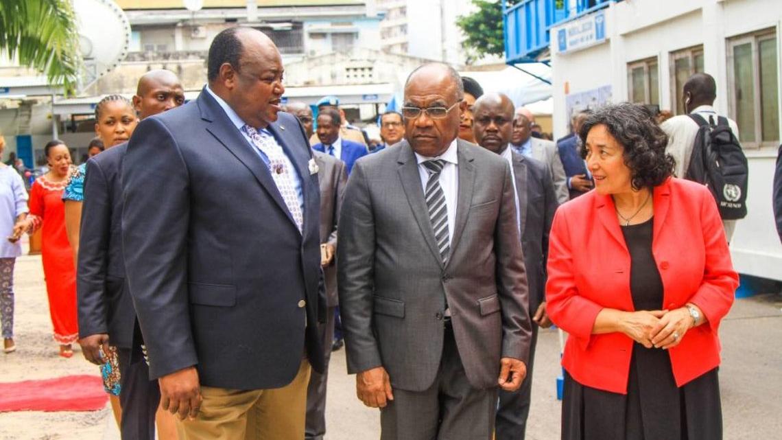 La cheffe de la MONUSCO accompagnée des autorités congolaises lors de la journée des casques bleus. Photo MONUSCO/Alexandre Essome