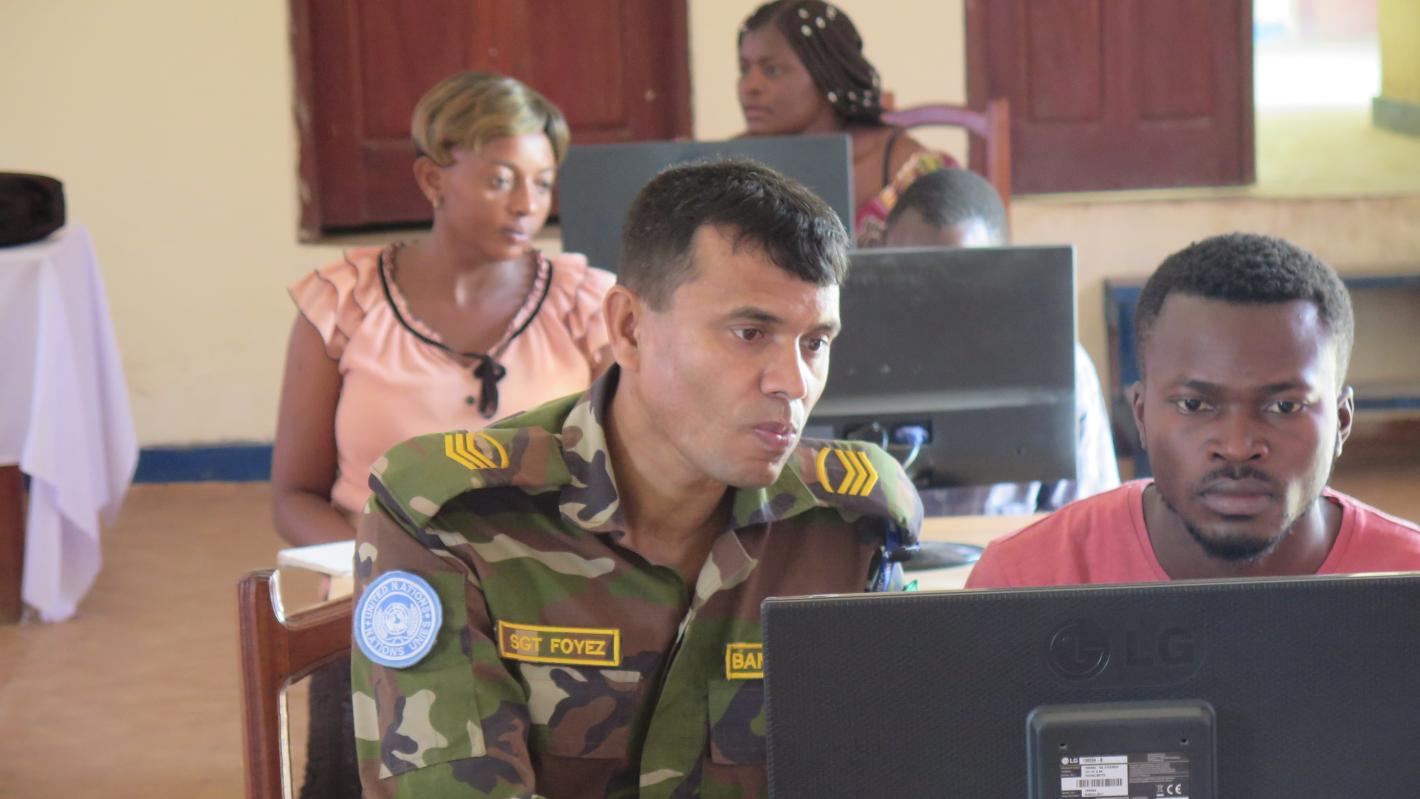 Bunia, le 21 mai 2018 - Dans la province de l’Ituri, les jeunes de 12 quartiers de la ville de Bunia sont en train d’être formés en Techniques de l’informatique par les casques bleus de la MONUSCO. Chaque session de formation dure un mois, à l’issue de laquelle, les lauréats reçoivent des certificats.