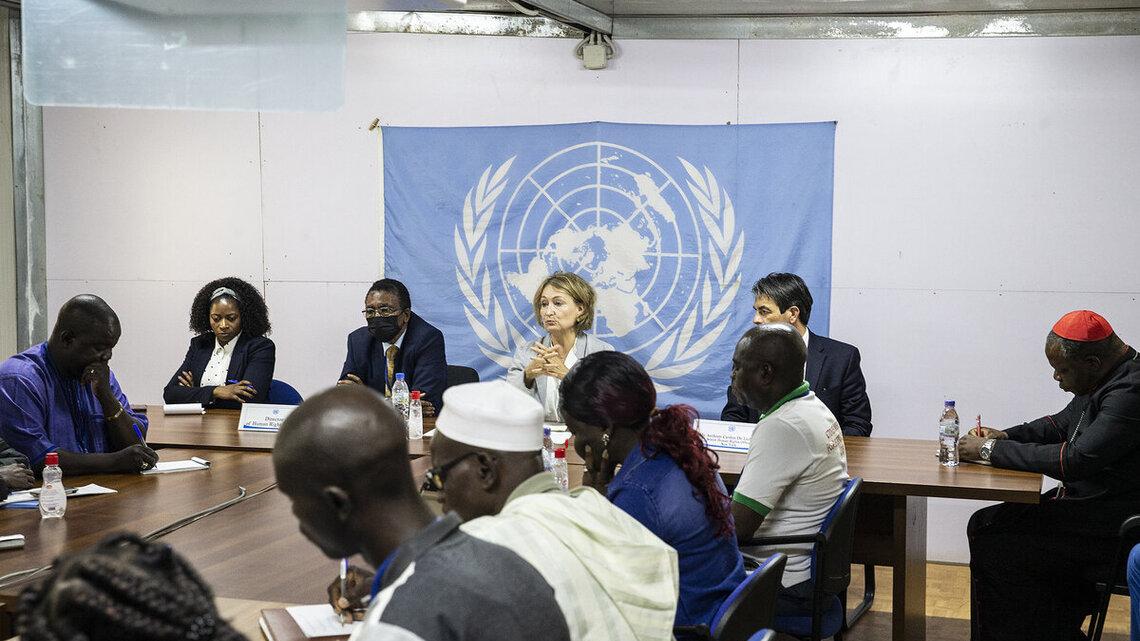 Ilze Brands Kehris s’est aussi entretenue avec les représentants des organisations de défense des Droits de l’Homme et de la société civile qui travaillent avec la MINUSCA afin de les écouter et échanger sur leur travail en faveur des droits de l’homme. Ils ont abordé ensemble, selon Yapande Nellie, conseiller au Haut-conseil de la communication : « Les défis, les difficultés que nous rencontrons dans l'accomplissement de nos missions qui nous sont assignées par les textes, les lois et aussi les perspectives.