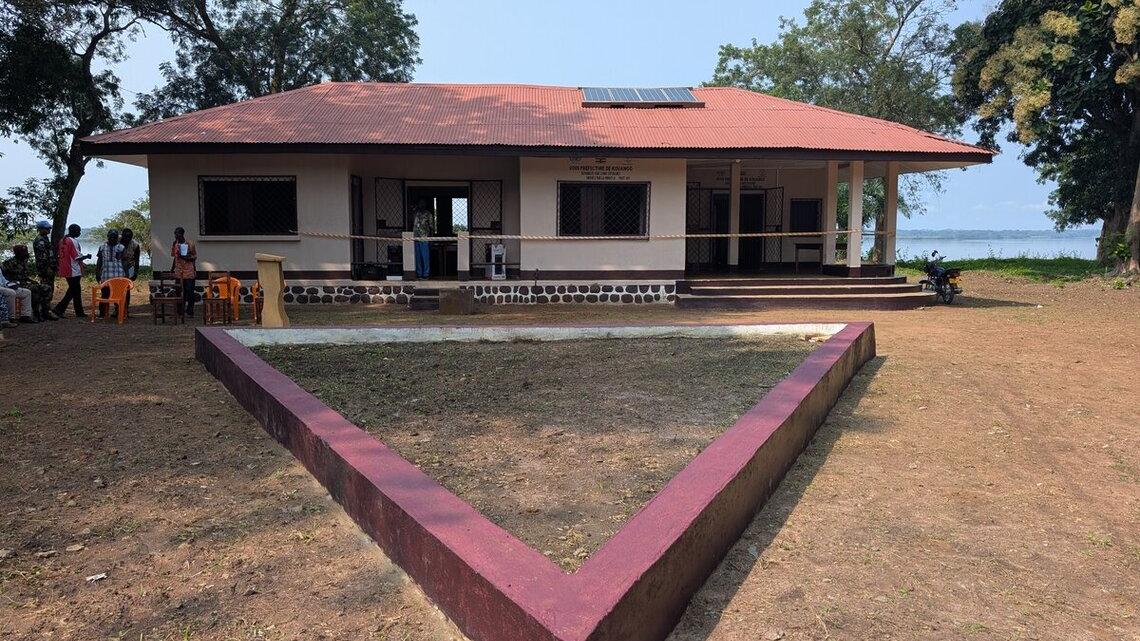 Détruit lors de la crise politico-militaire de 2013, le bâtiment de la sous-préfecture de Kouango (Ouaka) a été réhabilité et équipé par la MINUSCA dans le cadre de ses actions de renforcement de l’autorité de l’État en République centrafricaine. L’ouvrage a été remis aux autorités administratives le 27 août 2025.