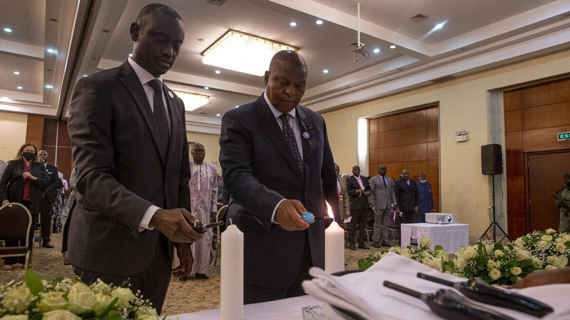 La diaspora rwandaise en République Centrafricaine a organisé, le 07 avril 2022 à Bangui, la 28e commémoration du génocide perpétré contre les Tutsis au Rwanda en 1994. Le président Centrafricain, Prof. Faustin Archange Touadera, le président de l’Assemblée nationale et les membres du gouvernement, ont également pris part à la cérémonie, en présence de nombreux invités, dont les deux Représentantes spéciales adjointes du Secrétaire général des Nations Unies en RCA, Lizbeth Cullity et Denise Brown.Organisée à l’initiative de la Mission diplomatique du Rwanda en RCA, cette 28e commémoration a été placée sous le signe de la mémoire, de l’unité et du renouveau.La cérémonie, sobre, était marquée par l’allumage de bougies, symbole de la mémoire ; l’observation d’une minute de silence en mémoire des victimes, la projection d’un documentaire et la lecture de témoignages de deux survivantes sur le génocide.« Nous commémorons pour ne pas oublier ; nous commémorons pour saluer la mémoire des victimes ; nous commémorons pour saluer la dignité des survivants ; nous commémorons également pour saluer la détermination et la capacité du peuple rwandais à s’unir », a déclaré le chef de la Mission diplomatique du Rwanda en RCA, Olivier Kayumba, dans son discours.Par ailleurs, il a fait savoir que le Rwanda et les associations des rescapés souhaitent voir construire, en RCA, une stèle ou un monument commémoratif du génocide de 1994. S’adressant au président de la République, Olivier Kayumba a également sollicité le soutien des autorités centrafricaines à la demande introduite par le Rwanda auprès de l’UNESCO pour inscrire quatre (4) sites du génocide au patrimoine mondiale de l’humanité.La ministre centrafricaine des Affaires étrangères, de la Francophonie et des Centrafricains de l’étranger, invitée d’honneur, a pour sa part témoigné de la solidarité du peuple centrafricain au peuple rwandais. « En cette journée, nous nous souvenons de tous ceux qui ont péri durant le génocide au Rwanda, et en leur mémoire, nous renouvelons notre détermination à faire en sorte que de telles atrocités ne se répètent plus dans aucun endroit du monde », a déclaré Sylvie Baïpo Temon.