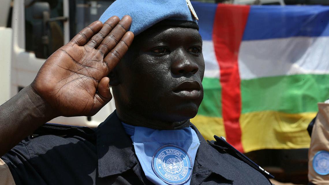 Il pose, attitude fière et regard impassible, béret bleu vissé sur le crane, en compagnie des hommes de son peloton. Le lieutenant Abdoulaye Seck fait partie de l’Unite sénégalaise de protection rapprochée qui a reçu en cette matinée du 4 avril une distinction pour contribution aux effort de paix et de stabilité en RCA. En ce jour de fete nationale senegalaise, les gendarmes posent en attendant les autorités venues assister à l’événement, Ismael Lo jouant en fond sonore. 10h15: le President de l’Assemblée nationale, le Représentant spécial du Secrétaire général des Nations Unies et chef de la MINUSCA, Mankeur Ndiaye, le Général de Corps d’Armée, Balla Keita, commandant de la Force, le Général de division, Pascal Champion, chef de la composante police, sont arrivés, la cérémonie peut commencer.