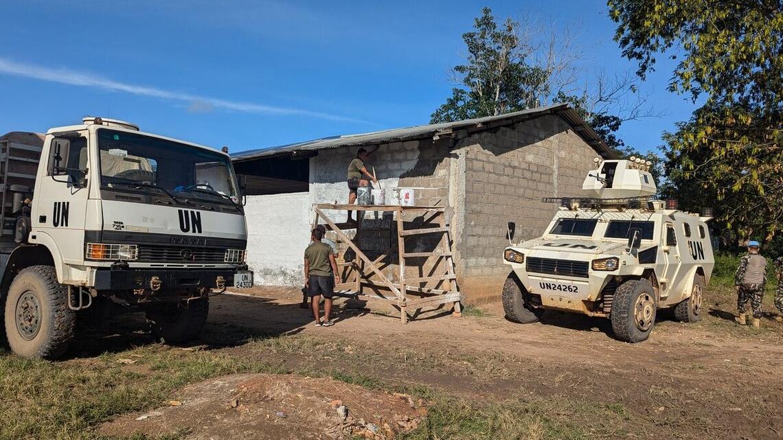 Les élèves du collège d'enseignement secondaire de Kouango, dans la préfecture de la Ouaka, pourront prochainement étudier dans de meilleures conditions suite à la réhabilitation des salles de classe par le contingent népalais de la MINUSCA basé à Kouango.