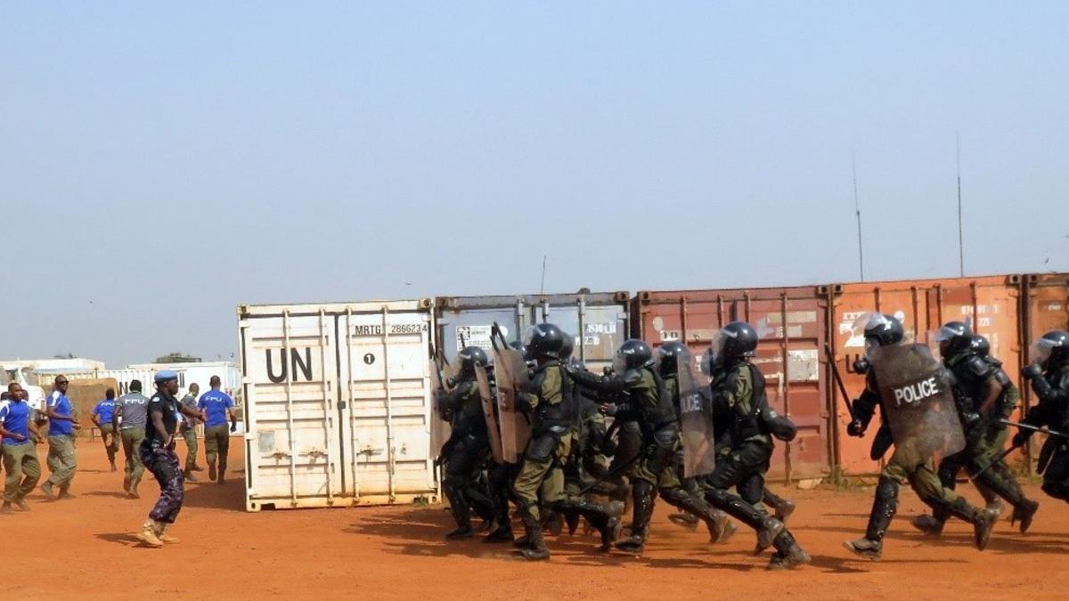 Arrivés à la MINUSCA le 20 décembre 2017, les 140 nouveaux policiers et gendarmes de l’Unité de police constituée (UPC) Mauritanie 1 ont effectué, le samedi 6 janvier 2018, à leur base située près de l’aéroport de Bangui Mpoko, un exercice de synthèse sur le maintien de l’ordre, en vue d’évaluer leurs capacités opérationnelles, avant leur déploiement à Bangui le 08 janvier 2018.