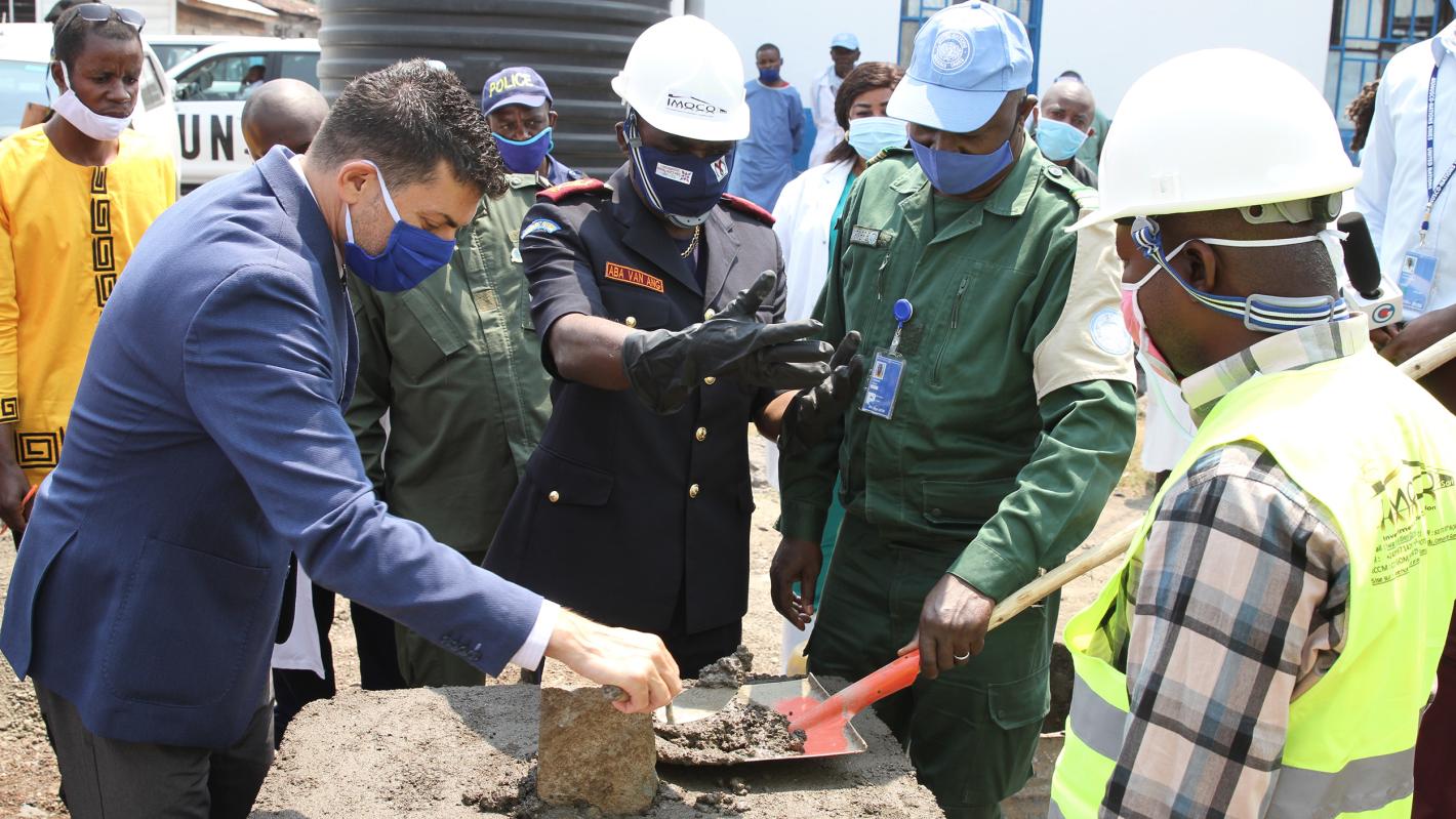 Le 29 juillet 2020, Omar Aboud, chef de bureau de la MONUSCO Goma Petit Nord, et le général Aba Van Ang, commissaire provincial de la police nationale congolaise au Nord-Kivu, ont posé ensemble la première pierre des travaux de construction et de réhabilitation du centre de santé de la police au Nord-Kivu.