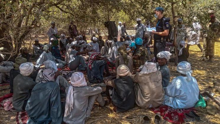 Des policiers déployés dans le cadre de la mission de maintien de la paix des Nations Unies au Soudan du Sud (MINUSS) consultent une carte. Photo : UNMISS