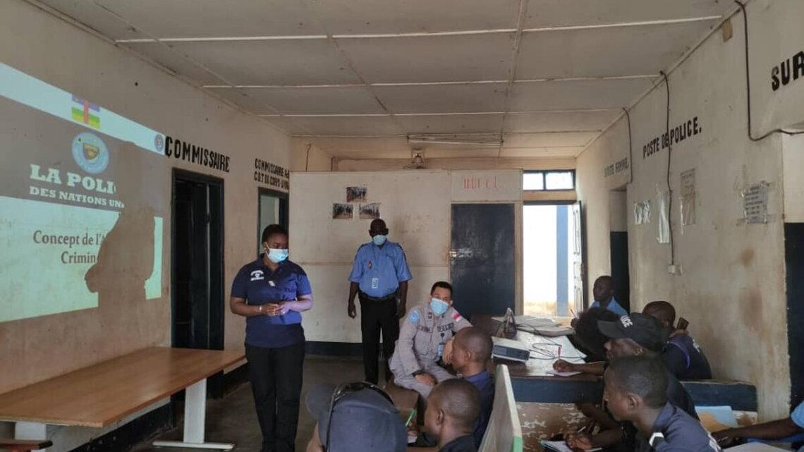 La Section renseignement et analyse criminelle de la Police MINUSCA a organisé, du 14 février au 08 mars 2022, des séances de renforcement de capacités à l’intention des Forces de sécurité intérieure des unités de Bangui. Ainsi, 168 personnels, dont 55 femmes, ont bénéficié de suivie, encadrement et conseils en matière de recueil de renseignements, de statistiques et d’analyse d’infractions criminelles.