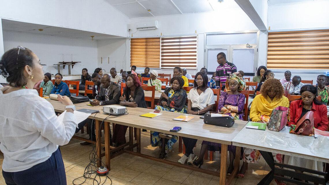 « Pour lutter plus efficacement contre les violences liées aux conflits, il faut aussi sensibiliser les communautés... puisque les violences sexuelles liées au conflit sont non seulement une violation des droits humains mais aussi un crime international (…) », souligne Laurence André, Conseillère principale pour la protection de la femme à la MINUSCA.