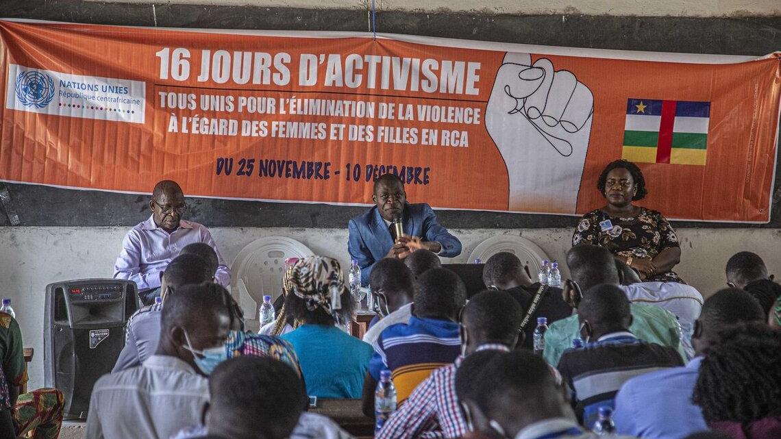 Plus d’une centaine d’étudiants de l’université privée New Tech Institut de Bangui ont été sensibilisés, le 08 décembre 2022, sur les violences basées sur le genre (VBG), à l’égard des femmes et des filles. Cette initiative de la Section des Affaires judiciaires et pénitentiaires de la MINUSCA et de ladite université s’inscrit dans le cadre de la campagne des 16 jours d’activismes contre les VBG.